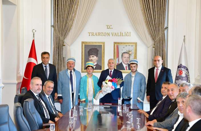 TESOB Başkanı Metin Kara, Trabzon Ticaret İl Müdürü Kasım Tiryaki, TESOB Yönetim Kurulu üyeleri Mustafa Özcelep, Mustafa Pehlivan, Temel Korkmaz, Mehmet Coşkun Zihni, Trabzon Kuyumcular ve Saatçiler Esnaf ve Sanatkarlar Odası Başkanı Ali Yazıcı, Akçaabat Esnaf ve Sanatkarlar Odası Başkanı Yaşar Sivrikaya, Türkiye’de ve Trabzon’da 2025 Yılının Ahisi seçilen taş oyma ustası Hayri Dertlioğlu, Türkiye’de ve Trabzon’da Yılın Kalfası seçilen hasır işlemeci Metehan Arslan ve Trabzon’da Yılın Çırağı seçilen ayakkabı imalatçısı Eren Bahadır’dan oluşan heyet, Trabzon Valisi Aziz Yıldırım’ı ziyaret etti.