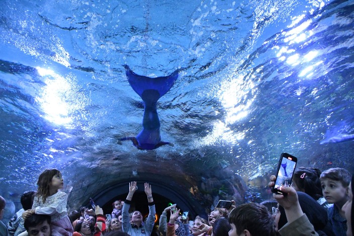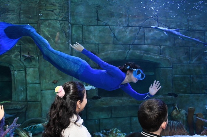 Trabzon’da ilk kez yapılan gösteride mavi renkli kostümüyle akvaryumda yüzen deniz kızının performansına alkışlarla eşlik eden ziyaretçiler, bu büyüleyici gösteriyi kayıt altına aldı. Deniz Kızı Şov gösterisini izlemek için Trabzon Akvaryum’a gelen ziyaretçiler aynı zamanda akvaryumdaki balıklar, sürüngenler ve diğer canlıları da görme fırsatı buldu. Zaman zaman akvaryumun camlarına yaklaşan deniz kızı, kendisini izleyenlerle hatıra fotoğrafı çektirdi.