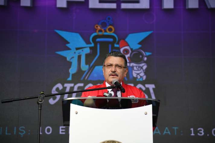 Başkan Genç, şöyle devam etti: “Şimdi 21. Yüzyıl Türkiye’si başlıyor. Artık istiyoruz ki ecdadımızın yaptığı gibi biz güç sahibi olalım ve daha fazla güçlenelim. Bizim bilgi ile edindiğimiz gücü kullanırken şu anki emperyal güçlerden farkımız var. İnancımızın ve medeniyetimizin bize yüklediği vicdan, merhamet ve sevgidir. Sadece Müslümanlara değil bütün insanlığa hitap eden bir dinin mensuplarıyız. O nedenle inşallah 21. Yüzyıl bakışı ile 21. Yüzyıl Türkiye’si ile yeniden Türkiye ve Türk Milleti’ne, Türk gençlerine özgüveni aşılayan, bu ufku milletimize ve medeniyetimize çizen Sayın Cumhurbaşkanımıza Trabzon’dan şükranlarımızı sunuyoruz. Bugün yaptığımız bu bilim festivalimiz ile tüm gençlerimize ve öğrencilerimize heyecanlı, meraklarını gideren ve daha da artıran yeni bir ufuk açacağız. Bundan dolayı çok mutluyuz. Ne mutlu bize ki böyle bir gençliğimiz var. Eğer hedef tam bağımsız Türkiye ise önce savunmada tam bağımsız olmamız lazım. Savuma sanayide yerli ve milli üretimimiz yüzde 20’lerden yüzde 80’lere çıktı. Bu gençlikle beraber yüzde yüz olacağız. Tam bağımsız Türkiye yolunda emin adımlarla yürüyeceğiz. Buna yürekten inanıyorum. Bu programda proje ortağımız olan TÜBİTAK’ımıza, sponsorumuz Vakıfbank’ımıza, TOGG’umuzun kıymetli yöneticilerine, TÜRKSAT’ımıza, Sivil Havacılık Genel Müdürlüğümüze, T3 Vakfımıza, DHMİ’ye, TÜRASAŞ’a, TİSAŞ’a, ROKETSAN’a, Türkiye’deki bilim merkezlerimize ve katkı sunan kurumlarımıza teşekkür ediyorum. Bilim festivalimiz hayırlı, uğurlu olsun.”