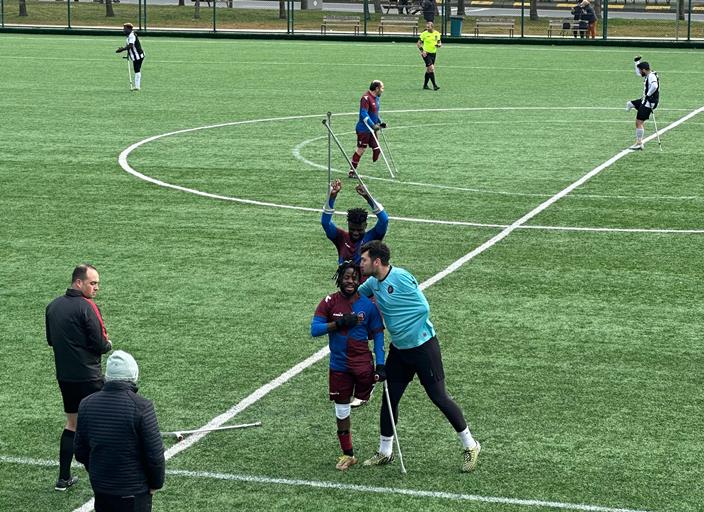 Türkiye Bedensel Engelliler Spor Federasyonu’nun organize ettiği Ampute Futbol Türkiye Kupası’nda Trabzon Büyükşehir Belediyesi Ampute Futbol Takımı ile İstanbul Şişli Yeditepe Engelliler Spor Kulübü çeyrek finalde karşı karşıya geldi. Faroz Futbol Sahası’nda oynanan mücadeleyi Trabzon Büyükşehir Belediye Başkanı Ahmet Metin Genç, taraftarlarla birlikte tribünden izledi. Teknik Direktör Faruk Kuduban’ın yönettiği bordo-mavililer maça çok istekli başladı. Çok sayıda gol pozisyonuna giren Trabzon ekibi 2-1’lik galibiyetle yarı finale adını yazdırdı. Trabzon Büyükşehir Belediye Başkanı Ahmet Metin Genç, takımı tebrik ederek yarı final maçı için başarı diledi.