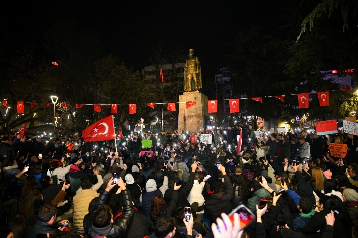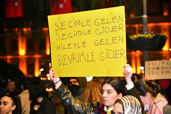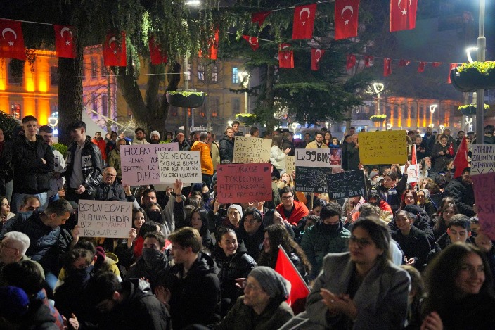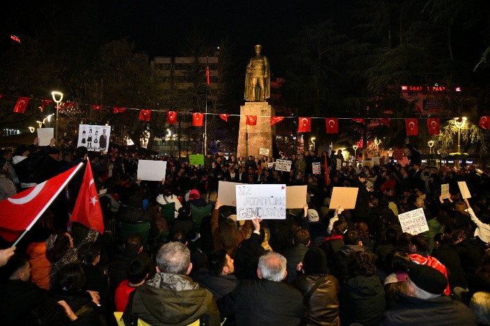 İBB Başkanı ve CHP’nin Cumhurbaşkanı adayı Ekrem İmamoğlu’nun ve yol arkadaşlarının gözaltına alınmasıyla başlayan protestolar, Trabzon’da ‘Adalet Nöbeti’yle devam ediyor.