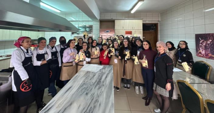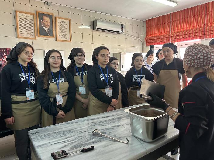 Trabzon Merkez Fen Lisesi Okul Aile Birliği ve Trabzon Olgunlaşma Enstitüsü iş birliğinde gerçekleştirilen etkinlikte, Kurum Müdür Yardımcısı ve Çikolata Eğitmeni Nergiz Güngör tarafından öğrencilerimize çikolata ile ilgili temel bilgilerin yanı sıra çikolata çeşitlerinin hazırlanmasından sunumuna kadar olan süreçler ve dikkat edilmesi gereken hususlar detayları ile aktarıldı.