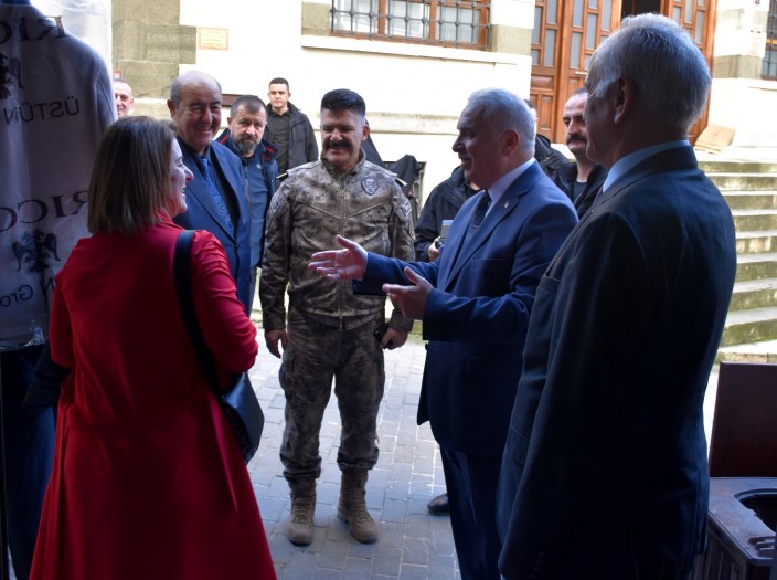 Açılışa katılanlar günün anısına tek tek Trabzon Ortahisar Gazeteciler Cemiyeti Başkanı İbrahim Hakkı Emiroğlu fotoğraf çekilerek böylesi önemli bir açılışa iz bıraktılar