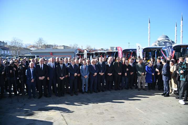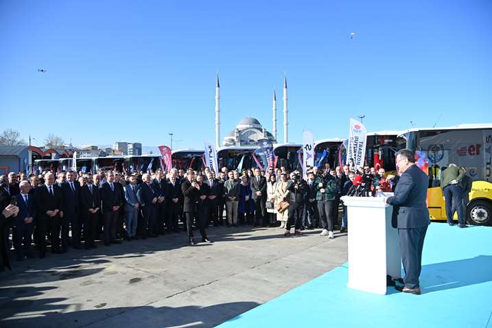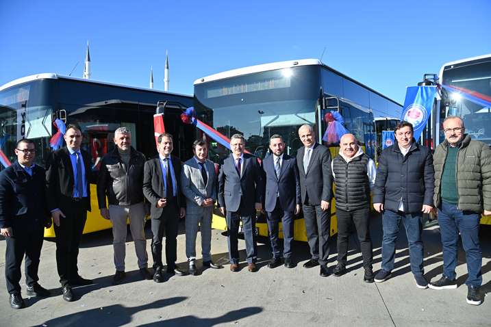Trabzon Büyükşehir Belediyesi ulaşım filosuna dahil edilen 19 yeni otobüs, Başkan Ahmet Metin Genç’in katıldığı törenle hizmete alındı. Ulaşım konusuna büyük önem verdiğini ifade eden Başkan Genç, “Trabzon’umuzun ulaşım standardının çıtasını filomuza eklediğimiz 19 yeni otobüs ile yukarıya çıkarıyoruz. Göreve gelirken söz verdiğimiz birçok alan vardı. Halkımızın öne çıkan taleplerini göreve geldiğimizde önceliklendirmek ve bu konuda adımları atmak için kararlılık ortaya koyduk. Büyükşehir Belediyesi olarak söz verdiğimiz birçok projeyi hayata geçirmenin çabası içerisindeyken öne çıkan konularımızın başında ulaşım geliyor. Bu alanda öncelediğimiz konu; seyahatin güvenli, konforlu ve nitelikli olması. Büyükşehir Belediyemizin ulaşım ağındaki güzergah taleplerini dikkate almak için bir takviye gerekliliği ortaya çıktı. Bugün de bunlardan bir tanesini yapıyoruz. Mutluyuz, gururluyuz. 19 yeni otobüsü filomuza katıyoruz. 10 adet 8 metre boyunda, 4 adet, 8 buçuk metre boyunda ve 5 adet 12 metre boyunda, 2024 model olan otobüslerimizi hizmete alıyoruz. Toplamda Büyükşehir Belediyesi filosunu 174’e çıkarıyoruz. Hayırlı, uğurlu olsun inşallah” dedi.
