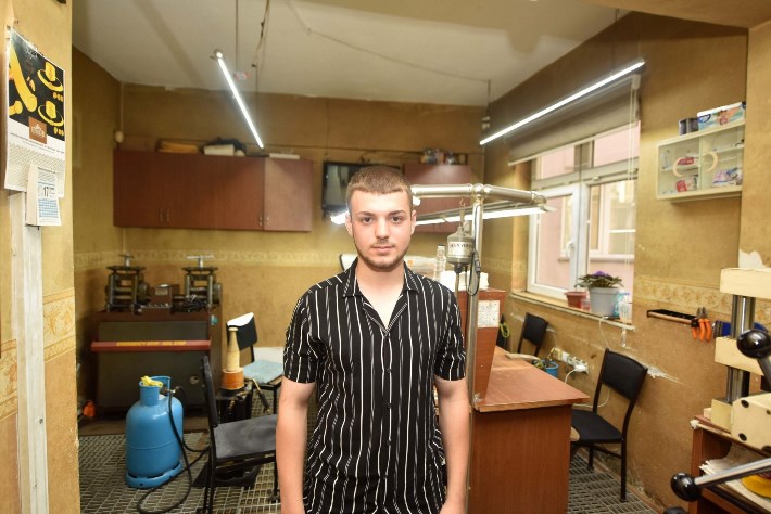 Metehan Arslan, “Ağabeyim de bu meslekteydi ona özenerek bunu yapmak istedim ve ilerliyorum. Çalıştığı atölyede örücüden gelen bilezikleri önce dövüyoruz, sonra tavlıyoruz, tellerini kaldırıp kaynatıyoruz. Sonra çeşitli işlemlerden geçirip tokasını takıp üretimi sonlandırıyoruz. Burada hasır bilezik, hasır kolye, yüzük ve küpe imalatı yapıyoruz. Önü açık meslektir. El yeteneği olan herkes rahatlıkla yapabilir. Sürekliliği olan bir meslek. Amacım usta olup dükkân açabilmek ve mesleği devam ettirebilecek çırak, kalfa ve ustalar yetiştirmek” dedi.