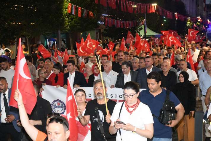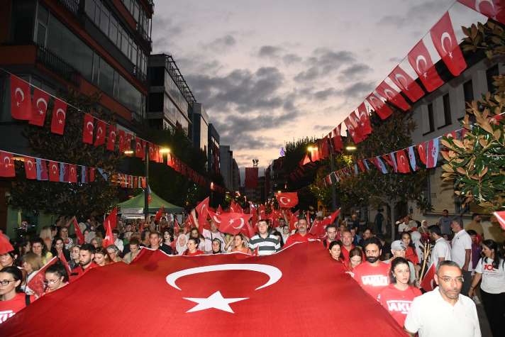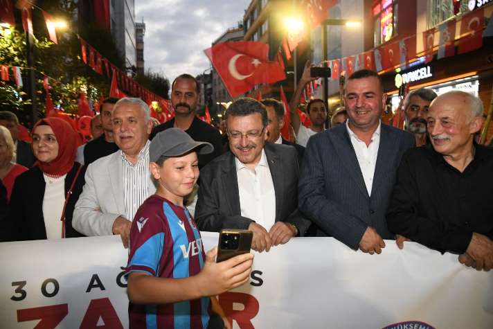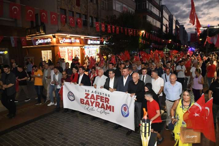 Trabzon’da 30 Ağustos Zafer Bayramı’nın 103. yıl dönümü kutlamaları kapsamında fener alayı yürüyüşü yapıldı. Kahramanmaraş Caddesi’nde başlayan ve Atatürk Alanı’nda son bulan yürüyüşe, Vali Aziz Yıldırım ve Büyükşehir Belediye Başkanı Ahmet Metin Genç’in yanı sıra, kent protokolü ve binlerce vatandaş katıldı. Ellerinde Türk bayrakları ve fenerlerle yürüyen katılımcılar, büyük bir coşkuyla bağımsızlığımızın sembolü olan Zafer Bayramı’nı kutladı.