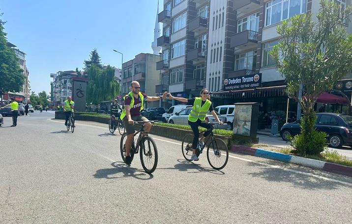 Türkiye’nin en büyük bisiklet organizasyonlarından olan ve 81 ilde eş zamanlı düzenlenen Geleneksel Yeşilay Bisiklet Turu’nun 12’incisi Trabzon’da gerçekleşti. Gençlik ve Spor Bakanlığı, Türkiye Bisiklet Federasyonu ve Yeşilay’ın düzenlediği, Trabzon Büyükşehir Belediyesi’nin de paydaşı olduğu etkinliğe, Trabzon Büyükşehir Belediye Başkan Vekilleri Ahmet Yüksel Gülay ve Faruk Kanca, Trabzon Gençlik ve Spor İl Müdürü Lokman Arıcıoğlu, Yeşilay Trabzon Şube Başkanı Işıl Demir Güner ve çok sayıda sporsever katıldı. Sporun önemine vurgu yapan Başkan Vekili Faruk Kanca, “Dünya bir imtihan yeridir. İnsanları kötülüğe sürükleyen birçok faktör bulunmaktadır. İçkiden sigaraya, kumardan fuhuşa, uyuşturucu maddelere kadar pek çok etken insanları yanlış yollara yönlendirmektedir. Bu nedenle, insanların korunabilecekleri güvenli limanlara ihtiyaçları vardır. Bu limanların en önemlilerinden biri de spordur. Spor branşlarından biri olan bisiklet, gençlerimizin her türlü spor yapması için önemli bir imkandır. Korunaklı limanların başında spor gelmektedir. Dolayısıyla biz de belediye olarak, insanları doğru ve sağlıklı aktivitelere yönlendirmek için elimizden gelen tüm gayreti göstermekteyiz” dedi.