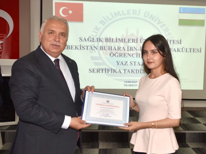 İş birliği protokolü kapsamında, her yıl yaz dönemlerinde, akademik başarı kriterlerini sağlayan öğrencilerin bilgi ve deneyimlerini artırmak amacıyla Sağlık Bilimleri Üniversitesi’nin Türkiye’deki birimlerinde akademik hareketlilik programlarına katıldığı vurgulandı. Bu çerçevede, 11 öğrenci Sağlık Bilimleri Üniversitesi Trabzon Tıp Fakültesi Kaşüstü Yerleşkesinde yaz stajlarını gördü. Bir aydır Trabzon’da bulunan ve 16 Ağustos’ta Özbekistan’a dönecek olan öğrenciler için sertifika ve veda töreni düzenlendi.