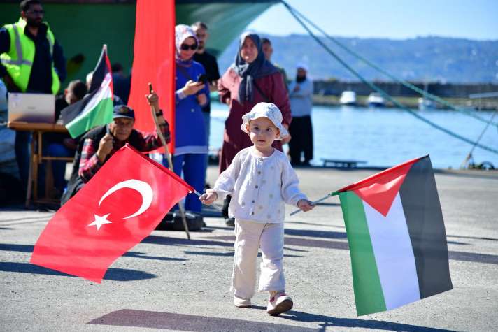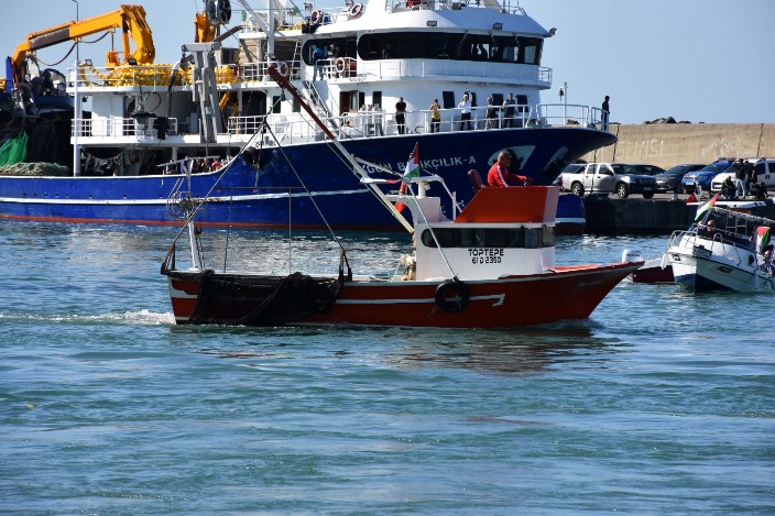 Program, dualar eşliğinde sona ererken, Türk ve Filistin bayraklarıyla donatılan tekneler Sumud Filo’suna destek amacıyla Karadeniz’e açıldı.