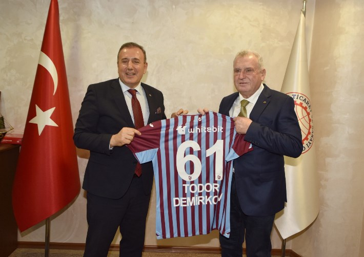 Burgaz Ticaret ve Sanayi Odası Başkanı Todor Demirkov ve beraberindeki heyet, TTSO’yu ziyaret ederek Başkan Erkut Çelebi ve yönetim kurulu üyeleri ile bir araya geldi. Çelebi ziyaretin anısına konuk başkana plaket ve Trabzonspor forması hediye etti. Demirkov, “Trabzonspor bizim bölgede de bilinen ve çok popüler bir kulüp” diyerek hediyeyi büyük bir memnuniyetle karşıladı.