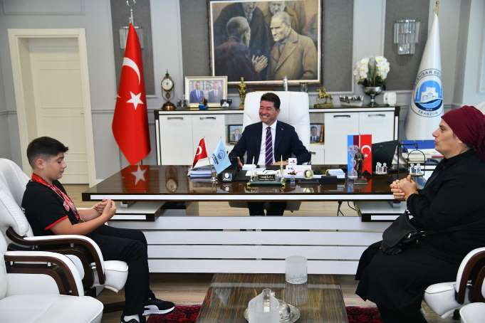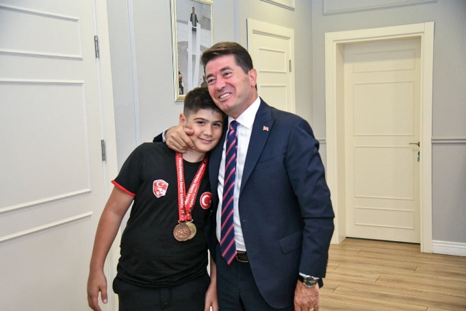 2025 yılı Türkiye Güreş Federasyonu faaliyet programı kapsamında Sivas’ta düzenlenen Minikler Türkiye Güreş Şampiyonası’nda 12 yaş 68 kilo kategorisinde Türkiye Şampiyonu olan Berat Efe Keskin, annesi Filiz Keskin ile birlikte Ortahisar Belediye Başkanı Ahmet Kaya’yı makamında ziyaret etti. Şampiyon Berat Efe’yi tebrik eden Başkan Kaya, kendisine çeşitli hediyeler verdi.