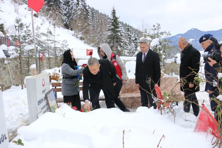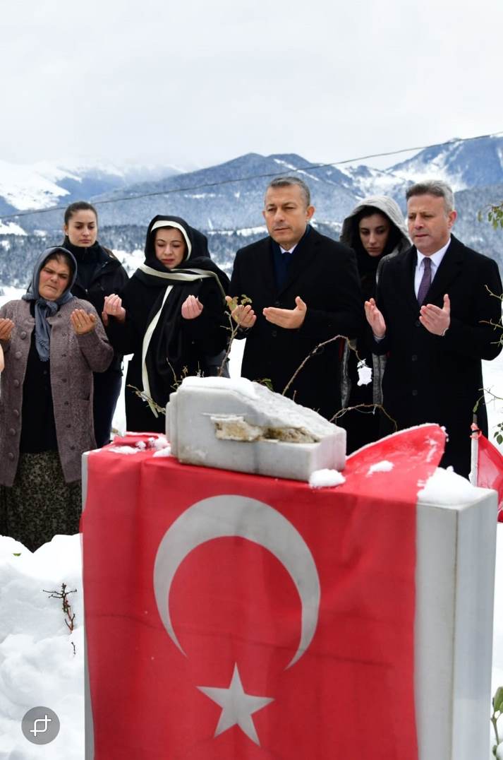 Cumhurbaşkanlığı kararı ile Trabzon Valiliği görevine atanan Vali Tahir Şahin, eşi Cansel Şahin ile birlikte vatan uğruna canını feda eden Şehit Eren Bülbül’ün Maçka ilçesindeki kabrini ziyaret etti.