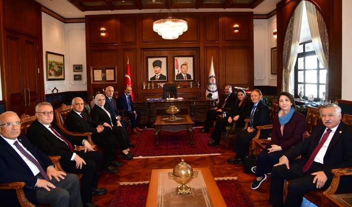 Vali Aziz Yıldırım, Komisyon Başkanı Dr. Mehmet Muharrem Kasapoğlu ile komisyon üyeleri Jülide Sarıeroğlu, Fatma Öncü, Aylin Yaman, Semra Çağlar Gökalp, Ayşe Keşir, Elvan Işık Gezmiş, Yücel Arzen Hacıoğlulları, Yüksel Taşkın, Ömer Faruk Gergerlioğlu, Latif Selvi, Burhanettin Kocamaz ve Ali Karaoba ile makamında bir araya geldi.