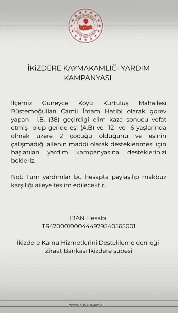 VEFAT EDEN İMAM İÇİN YARDIM KAMPANYASI