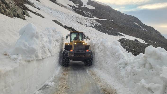 Trabzon Büyükşehir Belediyesi ekipleri, yaz mevsiminin başlamasına rağmen şehrin zirvelerindeki yayla yollarında henüz erimemiş kar ve kürtüklerle mücadele çalışmalarını sürdürüyor.