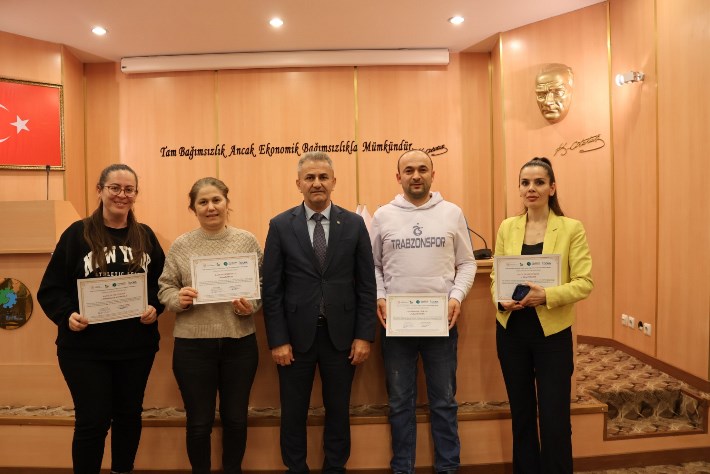 Eğitim programının sonunda düzenlenen sertifika töreninde, katılımcılara sertifikaları Trabzon Arsin Organize Sanayi Bölge Müdürü Hakkı Yazıcı tarafından takdim edildi.