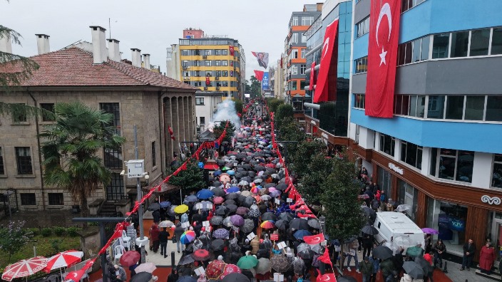 Ellerinde Türk bayrakları ve Atatürk posterleriyle, marşlar ve sloganlar eşliğinde büyük bir coşkuyla yürüyen korteje, Trabzon halkı da büyük ilgi gösterdi. Rota 61 Trabzon Motosiklet Kulübü’nün renk kattığı yürüyüşte, kentteki spor kulüpleri de açtıkları dev bayraklarla yer aldı. Vatandaşların yoğun alkışları ve tezahüratları eşliğinde ilerleyen kortej, Meydandaki Atatürk Anıtı önünde son buldu.