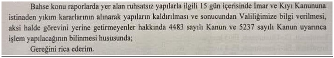 ”yazının üzerinden 330 (üçyüzotuz) gündür hiçbir işlem yapılmadığı gibi tahribatlar, sahiplenmeler ve keyfi uygulamalar hız kesmeden devam ediyor.