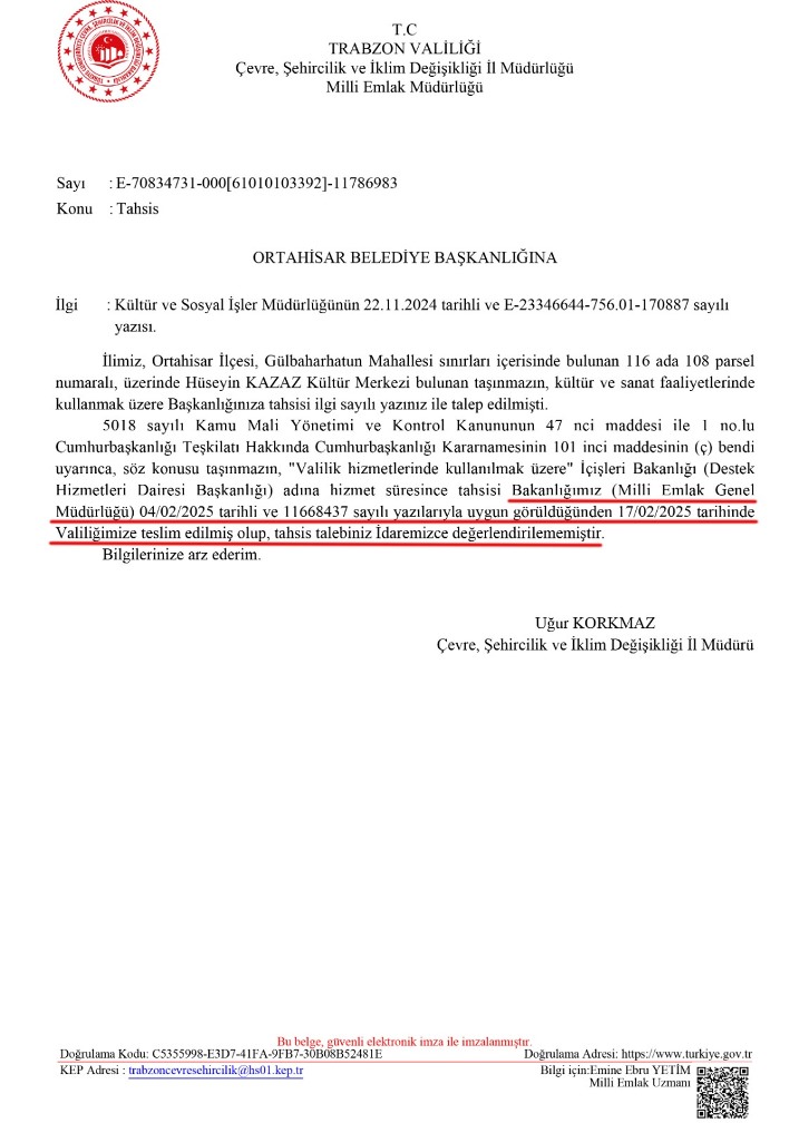 Hüseyin Kazaz Kültür Merkezi’nin AK Parti’nin yönettiği dönemde Ortahisar Belediyesi’ne tahsis edildiğini, ancak belediye yönetiminin CHP’ye geçmesiyle devir kararı verildiğini ifade eden Zorlu, “Kültür Merkezi’nin tahsis süresinin uzatılması için başvuruda bulunduk. Talebimize karşılık, ‘Hüseyin Kazaz Kültür Merkezi’mizin Trabzon Valiliği’ne tahsis edildiği’ cevabını aldık. 2022 yılında eski Bakan Süleyman Soylu, Trabzon Valiliği’nin yeni yapılan binasının açılışına geldiğinde, o zamanki Valimiz İsmail Ustaoğlu’na ‘Hüseyin Kazaz Kültür Merkezi’ni istiyoruz. Burası Trabzon Valiliği’ne yakışır’ demişti. Nitekim o dönemden itibaren tartışılan devir işlemi, belediyeyi biz kazanınca gerçekleştirildi. Bu tamamen siyasi bir karardır. Tıpkı yüzme havuzunda olduğu gibi Kültür Merkezi’nin de elimizden alınması için harekete geçilmiştir. Hiçbir haklı gerekçesi olmayan bu kararın tek bir açıklaması vardır, o da belediyeyi CHP’li bir ismin, Ahmet Kaya’nın kazanmış olmasıdır” dedi.