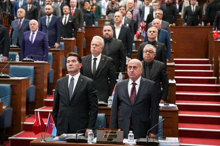 Trabzon Büyükşehir Belediye Meclisi’nin Kasım Ayı Toplantılarının ilk birleşimi, Türkiye Cumhuriyeti’nin kurucusu, Büyük Önder Gazi Mustafa Kemal Atatürk’ün ölümünün 87’inci yıldönümü dolayısıyla, Meclis Toplantısı saygı duruşu ve İstiklal Marşı ile başladı.